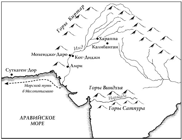И это почти все, что мы знаем. Все, что осталось от цивилизации городов Инда, обычно называемой «Хараппанская цивилизация» (по городу Хараппа, одному из первых найденных городов) – это руины, набор печатей, использовавшихся для идентификации товаров в торговле, и краткие надписи, которые никто не может прочитать, так как письменность до сих пор не расшифрована. Два самых крупных города Хараппы – это сама Хараппа на северном рукаве Инда и Мохенджо-Даро далеко на юге. [64] Напрягая воображение, мы можем заселить их безликими ремесленниками, купцами и чернорабочими, но Хараппанская цивилизация не оставила нам записей о битвах, осадах, борьбе за власть или сказаний о героях.