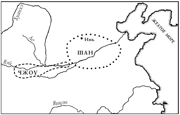 Западнее земель Шан в долине реки Вэй жило племя Чжоу. Они не были подданными царя Шана, хотя их глава – «князь Запада» – признавал власть шанской короны целованием. В конце концов, их земля лежала почти в четырехстах милях от столицы. Кости оракула путешествовали туда и обратно между «князем Запада» и дворцом Шан, поддерживая открытой тропу одного языка и одинаковых обычаев. Но знать Чжоу в первую очередь была верна своему собственному господину, а не далекому монарху Шан. Когда вспыхнуло восстание, они ждали приказов только от «князя Запада».