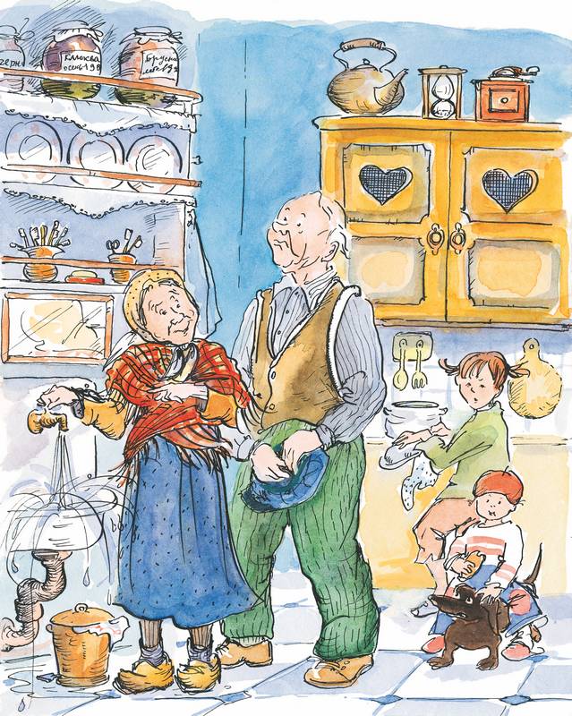 — Добро пожаловать! Добро пожаловать! — приветствовала их старушка. — У меня есть для взрослых кофе, а для детей молоко. И печенье для всех.