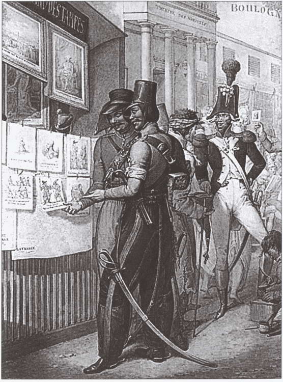 Казаки рассматривают карикатуры на себя. Париж:. 1814 г. Художник Г.-Э. Опиц