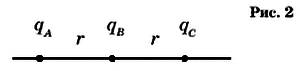 18. Три одинаковых металлических маленьких шарика расположены на прямой в точках A, Bи С(см. рис. 2), причем АВ= ВС= r. Заряды шариков равны q A= q, q В= —3qи q c= q, соответственно ( q> 0). Во сколько раз изменится величина силы, действующей на заряд q с, если шарики с зарядами q Aи q Bпривести в соприкосновение и вернуть их в точки Аи В.