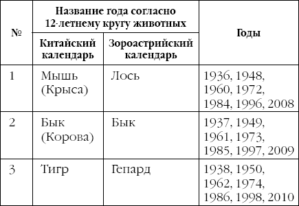 Правители года в китайском и зороастрийском календарях несколько отличаются: в древнем персидском варианте нет паразитирующих животных.