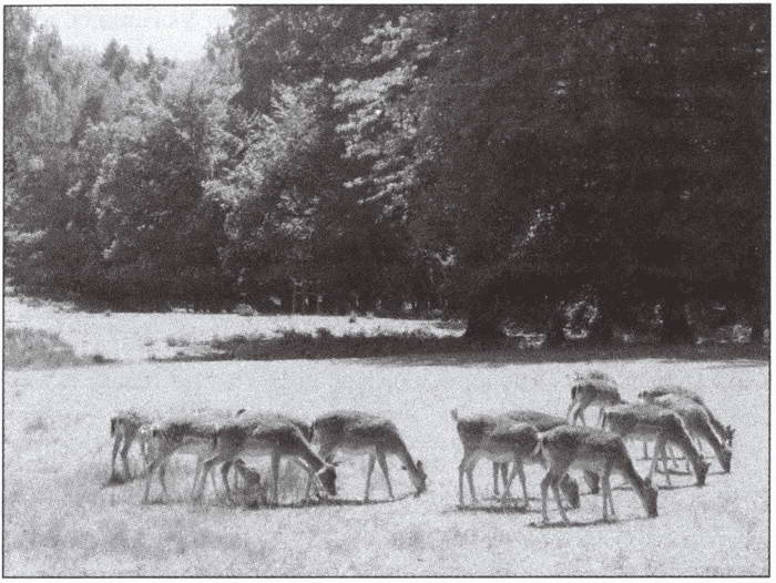 Если вы приехали в Херренкимзее жарким летним днем, то будет особенно приятно, оставив по правую руку монастырь со зданием старинной церкви на вершине небольшого холма, оказаться в плотной тени аллеи, ведущей к замку. Кстати, наш рассказ о нем уместнее начать как раз с парка, занимающего большую часть острова, общая площадь которого составляет примерно 240 га. Фактически парком можно назвать лишь ту его часть, что находится непосредственно перед замком; далее он переходит в настоящий лес. Если вы не связаны с экскурсией, то после осмотра всех достопримечательностей Херренкимзее выделите некоторое время, чтобы побыть наедине с природой этого тихого, нетронутого цивилизацией места. Если выйти из замка и сразу повернуть налево, то буквально в нескольких метрах от самого здания вам откроется совершенно незабываемая картина. На большой лесной поляне, за деревянной загородкой, мирно пасется целое стадо диких оленей, к которым можно даже приблизиться, а если повезет и вы вызовете у кого-то из них особое доверие, то и покормить с руки тут же сорванным пучком травы. Самец может даже позволить почесать себя за ухом или по шее и в то же время будет зорко следить, чтобы никто не обидел его самок. Кстати, в такие минуты вы сможете лучше понять и личность короля Людвига II, который, как мы помним, сам кормил диких коз и оленей и ненавидел охоту.