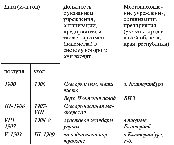 6. Основная профессия (занятие) в настоящее время: для членов ВКП(б) – к моменту вступления в партию слесарь стаж 7 лет