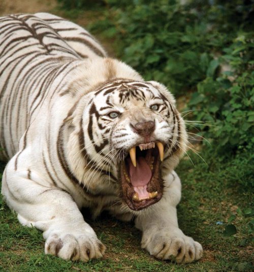 Широко известна история выведения породы так называемых королевских тигров махараджей Рева Шри Мартанд Сингхом. В лесу Говиндгар индийского штата Мадхья-Прадеш был обнаружен выводок тигров, где один из котят был частичным альбиносом — белым с чёрными полосами и голубыми глазами. Тигрёнка назвали Мохан. Замечу, что такие белые тигры определяются в звероводстве как «шиншилловые альбиносы» и отличаются от настоящих, не имеющих тёмных полос, альбиносов с розовыми когтями и красными глазами. Мохан был скрещен сперва с тигрицей обычного окраса, которую звали Бегум. Они прожили вместе несколько лет и дважды приносили потомство. Долгожданных белых среди детёнышей не было. И тут пытливый махараджа подсунул Мохану в качестве пары его же дочь — Радху. И в первом же выводке Радха принесла четырёх белых тигрят.