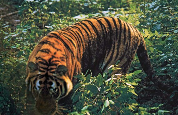 Во время охоты в высоких зарослях тростника тигр, так же как и медведь, иногда поднимается на задние лапы, чтобы осмотреться, а иногда прыгает вертикально вверх, как лисица.