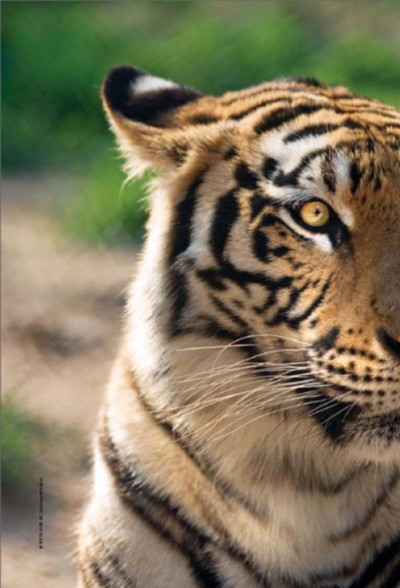«…из органов чувств у тигра лучше всего развит слух. Хотя ушная раковина его сравнительно мала, но он улавливает малейший шум на далёком расстоянии. Во время своих охот, при добывании пищи, он руководствуется почти исключительно слухом, а затем зрением, которое развито менее, но всё же достаточно, чтобы уловить малейшее движение не только днём, но и ночью».