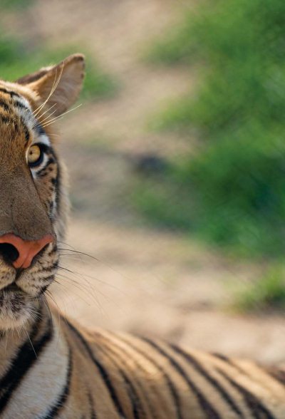Глаза кошек (в том числе и самых крупных) являются совершенным созданием естественной биоинженерии. Кроме того что они имеют выпуклую роговицу и расширенный зрачок, количество восприимчивых к слабому освещению клеток глазного дна у них относится к клеткам, отвечающим за яркий свет, как двадцать пять к одному (у людей — четыре к одному). Также в кошачьем глазу содержится «зеркальный» слой клеток, который возвращает часть света вновь на палочки сетчатки, благодаря чему те получают двойной заряд возбуждения. Именно из-за этой особенности строения глаза кошек блестят в темноте, отражая свет. Считается, что ночное зрение тигра в шесть раз лучше, чем у людей.