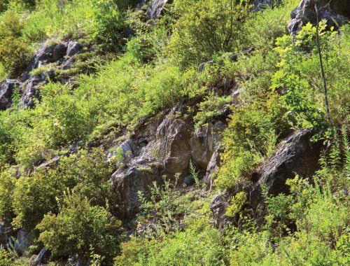 Скалы, заросшие кустарником, — любимые места нападения тигров на людей. Так об этом рассказывает Дж. Корбетт, фото М. Кречмара