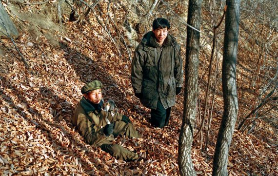 С момента, когда леопард начинает поиск добычи, он перемещается осторожным крадущимся шагом, используя различные укрытия и неровности — бровки, гривы, валежник, валуны, стволы живых деревьев, — как выражался В. Коркишко, находясь как бы «в тени видимости» со стороны, противоположной его движению, при этом зверь выбирает поверхность, на которой шаги практически не слышны. Он старается ступать по льду замёрзшей речки, бесснежным бровкам берегов, поваленным деревьям и вмёрзшим в лёд камням. Часто во время такой разведки леопард использует тропы животных и человека, а также лесные дороги, которых в Уссурийском крае нынче великое множество.