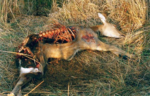 Если крупным зверям леопард, как правило, прокусывает горло, повреждая артерии и трахею, то мелких животных он убивает или ударом лапы, или проламывая клыками череп. По крайней мере, я наблюдал именно такой способ умерщвления добычи на нескольких барсуках, найденных в юго-западном Приморье, и на небольшой косуле в северной части Шуфанского плато.