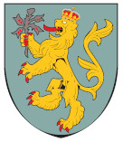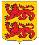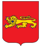 Геральдический лев на гербе острова Олдерни (Великобритания).