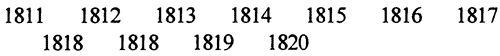 Далее на той же странице идут четыре неравномерные колонки дат, охватывающие девятнадцать лет, из которых, по крайней мере, девять были еще впереди: