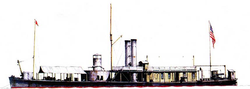 Бронирование: 2,5 дюйма корпус. 6 дюймов башня, 1,5–2 дюйма палуба Вооружение: две 11-дюймовые гладкоствольные пушки (башня), одна 12- фунтовая нарезная пушка (палубная) добавлена в середине 1864 г.