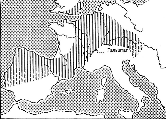 Рис. 32. Распространение гальштатской (кельтской) культуры в Европе