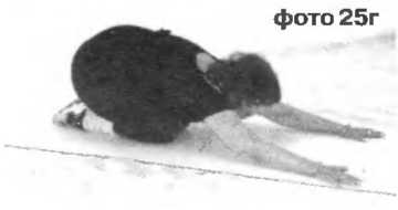 Болевой синдром можно снять за один — два дня. Далее упражнение «кошка», выполняется, стоя на четвереньках. Прогибания в спине вверх-вниз (см. фото 25в) не менее 12–15 раз за подход. После сесть назад на пятки, вытянув руки вперед, растяжка мышц спины (см. фото 25г).