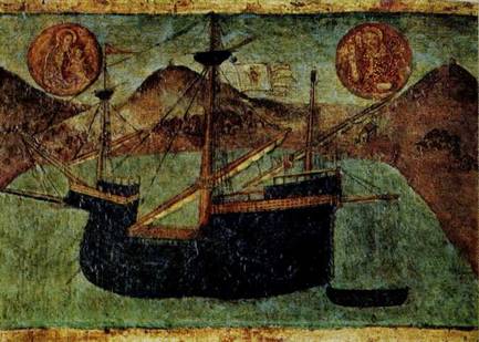 Карака — судно Дубровницкого флота. Фрагмент картины Н. Божидаровича. 1513