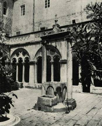 В Доминиканской церкви находится одна из ранних работ Н. Божидаровича — триптих 1490-х годов, В центре его, на нейтральном золотом фоне мадонна в окружении херувимов. Она в узорчатом золотом плаще с яркой зеленой подкладкой. На боковых створках фигуры четырех святых, среди которых выделяется седобородый старец — св. Влах в богатом облачении, с моделью города в руках. Здесь мы встречаемся с первым достаточно достоверным изображением Дубровника. Это почти точный документ, фиксирующий определенный этап развития города. Даже сейчас мы легко узнаем отдельные сооружения. Кроме того, перед нами один из самых ранних городских пейзажей в Дубровницкой живописи.
