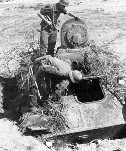Немцы осматривают подбитый танк Т-70. Район Сталинграда, июль – август 1942 г. Танки стали одним из главных средств борьбы на дальних подступах к Сталинграду