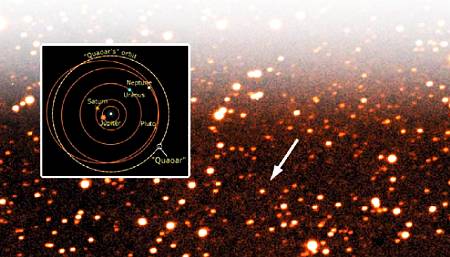 Эти предсказания отчасти сбылись. Два года назад астрономы обнаружили объект, удаленный от нас на 6,5 млрд. км. Тогда очередная кандидатка на роль «десятой планеты» получила странное имя Кваоар: так зовут индейское божество, участвовавшее в сотворении мира. Но когда ученые из Калифорнийского технологического института объявили о новом «грандиозном открытии», сделанном с помощью сверхмощного телескопа Хаббл, то тут же попали под холодный душ скептических замечаний.