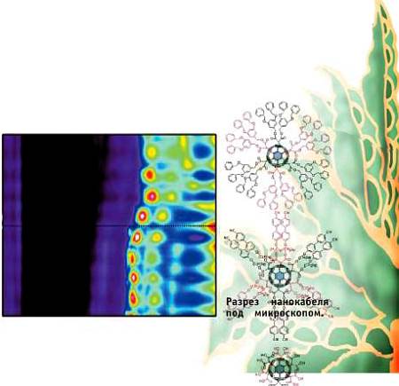 Таких превращений технологи добиваются при облучении нанотрубок лазером или электронным пучком, в присутствии металлических катализаторов (например, калия). При этом, как выяснилось, слипание фуллеренов происходит только внутри трубки-стручка, которая служит своего рода нанореактором. А это, в свою очередь, наводит на мысль, что подобным образом можно изготовлять, скажем, нанокабели — тончайшие проводники, расположенные внутри изолирующей оболочки.