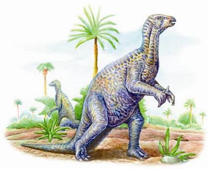 Игуанодоны, представители группы растительноядных динозавров, обитали на Земле примерно 100 млн. лет назад. А населяли эти гигантские животные территорию современной Европы. Ящеры имели зубы, по внешнему виду похожие на зубы известных и ныне ящериц игуан. Именно поэтому доисторические животные и получили свое название. Огромные зубы динозавра располагались в 4 – 5 рядов, каждый из которых был словно бы насажен на соседний. Дело в том, что вследствие поедания огромного количества разнообразной растительной пищи зубы животного очень быстро изнашивались, портились и поэтому постоянно заменялись новыми, вырастая один над другим. Именно такой причиной можно объяснить столь необычное строение зубов игуанодонов.