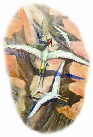 Примерно 70 млн. лет назад в небе летали загадочные существа, одновременно похожие на птиц и зверей. Одни из них не превосходили по размерам современного воробья, другие же были значительно больше крыла реактивного самолета. В науке эти загадочные существа получили название летающих ящеров или птерозавров. Летающие ящеры были причислены учеными к надклассу ископаемых пресмыкающихся. Они обитали на планете в юрский и меловой периоды. Это была группа животных, которая в процессе эволюции смогла приспособиться к жизни не только на земле, но и в небе. В подарок от матушки-природы эти существа получили своеобразные крылья, представлявшие собой тонкую и прочную кожную перепонку, и полые, а потому легкие кости. Все представители надкласса имели длинную гибкую шею и хорошо развитую грудину. Местами обитания птеродактилей чаще всего становились берега древних крупных водоемов и морей. Их рацион был представлен в основном рыбой и насекомыми, реже небольшими наземными животными. К настоящему времени особенно большое количество останков летающих ящеров было обнаружено на территории Северной Америки и Западной Европы, а также в Казахстане и Поволжье. Птеродактили являются наиболее ярким примером существ, сочетавших черты современных птиц и рукокрылых млекопитающих.