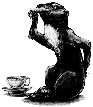Он взялся за кончик своих пышных усов и, рывком сдернув их, кинул на стол. Ученая леди изумилась, а ее лори подполз и занялся изучением накладных усов.