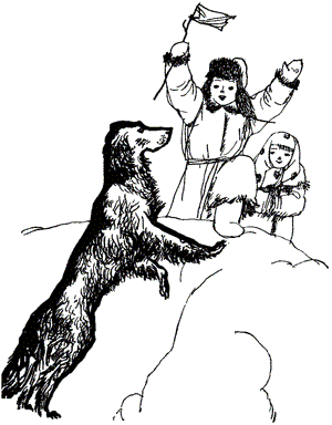 Решили послать Нигера. Если он почту носит, что ему стоит притащить какой-то пояс! И вьюги он не боится. Я подозвала пса, приподняла его длинное мягкое ухо и долго старательно нашёптывала ему, надеясь, что он поймёт, что от него хотят.