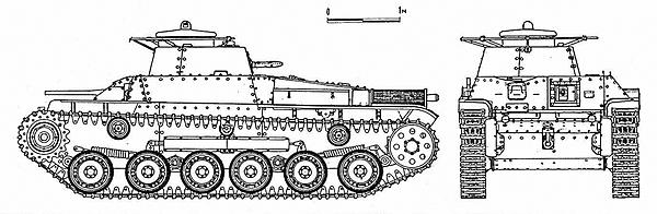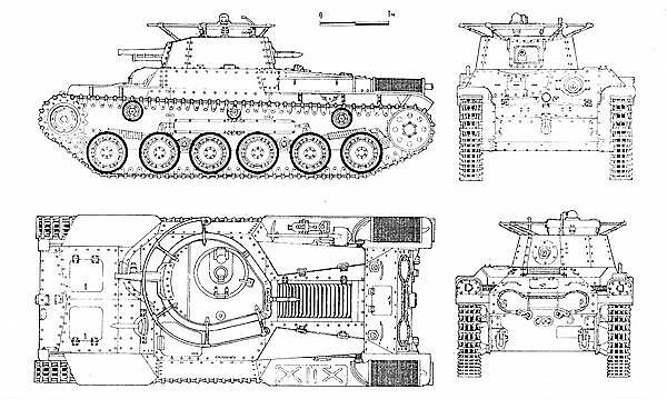 ДВИГАТЕЛЬ: «Тип 97» («Мицубиси»), 12-цилиндровый, дизельный, воздушного охлаждения; мощность 170 л.с. при 2000 об/мин.