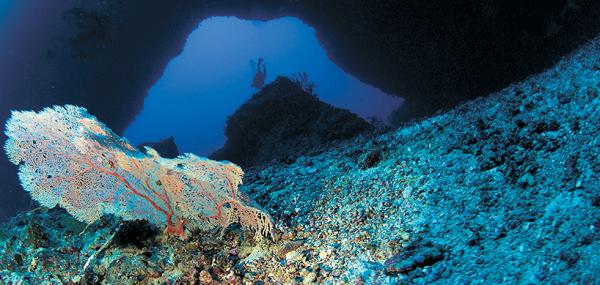 Знаменитая арка в южной части рифа. Глубина 60 м