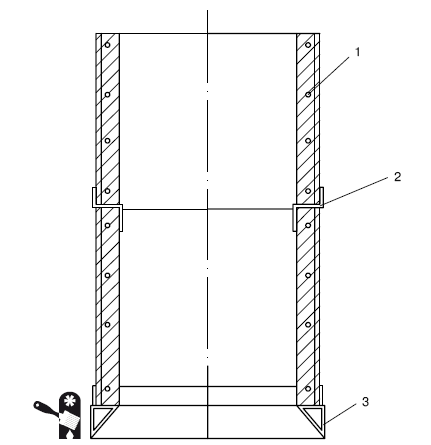 Рис. 1.18.Устройство бетонного колодца: 1 – арматура; 2 – скоба; 3 – башмак