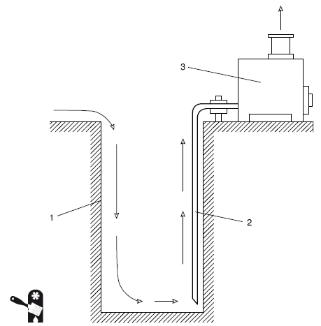 Рис. 1.25.Удаление из колодца вредных газов с помощью печки: 1 – колодезная шахта; 2 – вентиляционная труба; 3 – печка