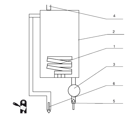 Рис. 3.18.ТЭНовый электрический котел: 1 – ТЭН; 2 – теплообменник; 3 – циркуляционный насос; 4 – автоматический стравливатель воздуха; 5 – вход теплоносителя в котел; 6 – выход теплоносителя из котла