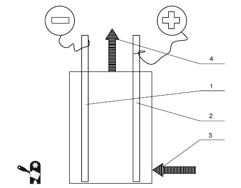 Рис. 3.19.Принцип работы электродного котла: 1 – катод; 2 – анод; 3 – подача теплоносителя; 4 – выход теплоносителя