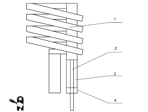 Рис. 3.17.Устройство ТЭНа: 1 – трубки из стали или меди; 2 – спираль; 3 – диэлектрический наполнитель; 4 – изолятор