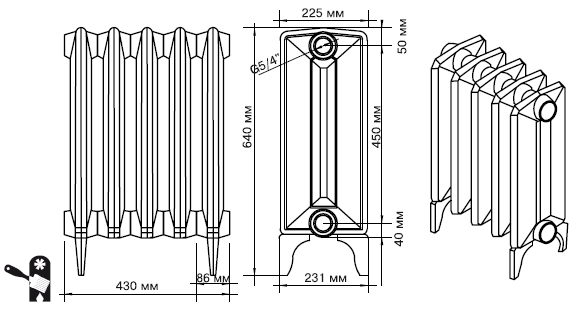 Чугунные радиаторыобладают низкой теплопроводностью и большим весом, обогрев помещения осуществляется за счет излучения (Рис. 3.27).