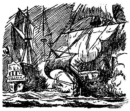 Лорд Джулиан мысленно проклял смелость безвестного соотечественника. «Арабелла» шла сейчас курсом, линия которого пролегала как раз между двумя испанскими кораблями. Лорд Джулиан схватился за голову и воскликнул: