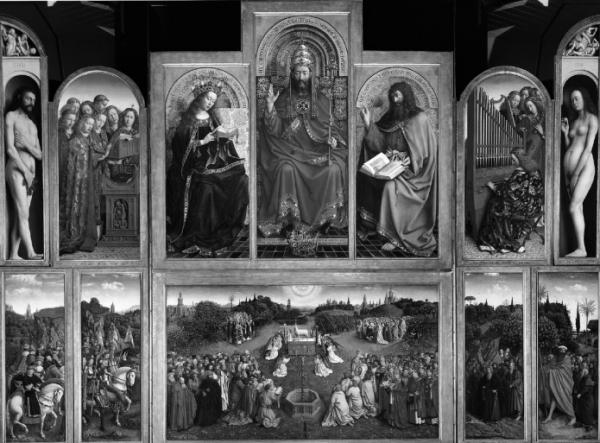 Ян ван Эйк. Гентский алтарь, 1432. Дерево, масло. 3,5x4,6 м. Собор Святого Бавона, Гент, Бельгия. (Фото Хуго Мартенса.)
