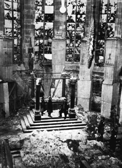 Ахен, Германия, октябрь 1944 г.Картина разрушения, представшая глазам хранителя памятников Уокера Хэнкока и солдат 1-й армии США, 25 октября 1944 года прибывших к Ахенскому кафедральному собору. (Фото Национального управления архивов и документации, Колледж-Парк, штат Мэриленд.)