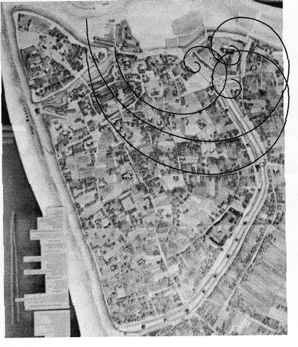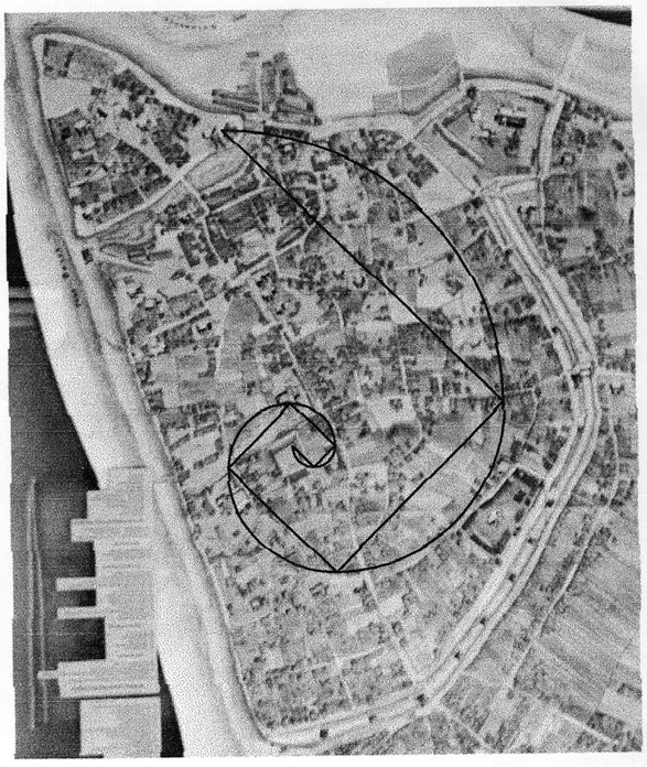 Рис. 97 ж. Спирали Золотого сечения на плане Ярославля