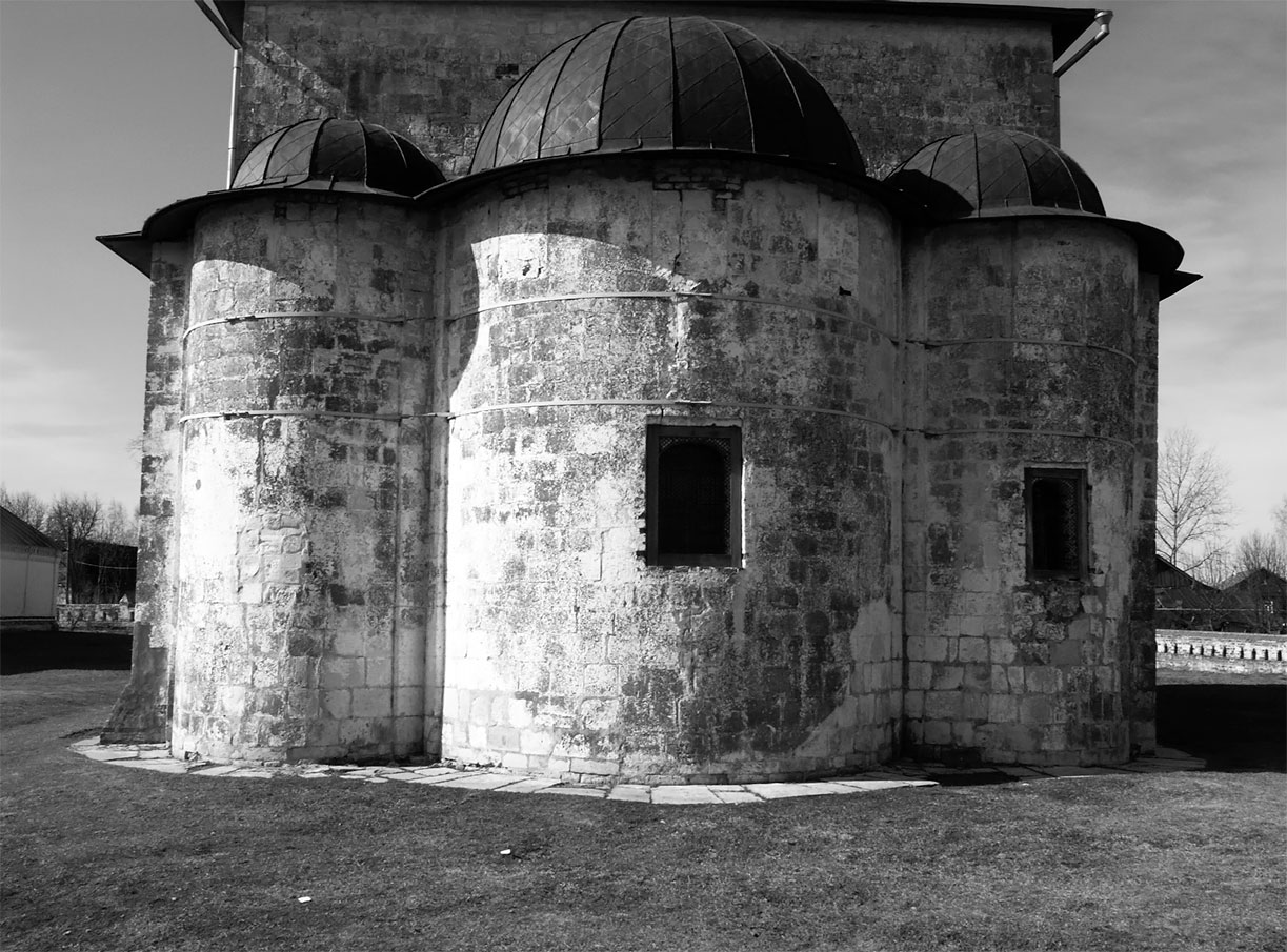 Но опять же не везде можно сделать такое даже в музеях. Например, в Дмитриевском соборе-музее во Владимире музейные работники умудрились всё испортить. Что они сделали? Они водрузили огромный старый крест с купола посредине центрального нефа, почти перекрыв его, а в середине собора прямо под куполом поместили совершенно пустую, ничего не говорящую ни уму ни сердцу экспозицию каких-то старых мелких предметов. В результате всех этих непродуманных и непрочувствованных действий центральное пространство церкви вместе с центральным нефом было почти выключено. Кроме того, вход в храм сделан не с запада, как положено, а с юга, так что проход к правому нефу полностью перекрыт. То есть сила в этом соборе почти перекрыта. Довольно трудно взять здесь движение, наиболее ясно оно чувствуется напротив левого, всё ещё открытого нефа.