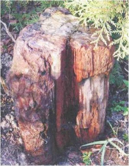 В-третьих, это «настоящие» окаменелости, или петрификации (фото 18). К этому виду фоссилий относятся части растений, сохранившие для нас свой объём и внутреннюю структуру. Так происходит, когда органическое вещество постепенно и очень медленно замещается неорганическим, например, окисью кремния. Порою сохранность таких образцов удивительна. В микроскоп на них можно рассмотреть каждую клетку строения организма, различить начинающие прорастать споры в спорангиях растений, которым уже перевалило за 400 млн. лет. К петрификациям относятся и целые окаменелые стволы деревьев, такие, как широко известный триасовый «каменный лес» из Аризоны.