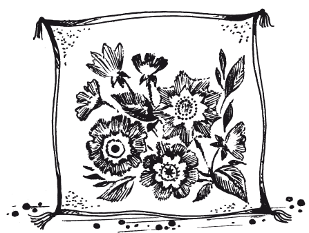 Края льняной ткани 2 раза подвернуть на изнаночную сторону и подшить. Затем перенести на нее узор.