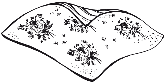 220 см плотной белой хлопчатобумажной ткани полотняного переплетения шириной 120 см; нитки мулине в три сложения бледно-зеленого, красного, бледно-желтого, зеленого и синего цветов; иглы с широким ушком для вышивания; схема узора в натуральную величину; ножницы; пяльцы; швейная машинка.