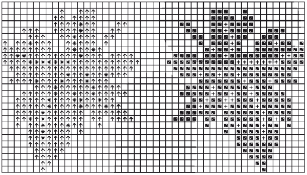 Вышивка выполнена крестом нитью в три сложения на одну клетку ткани по счетной схеме (рис. 66).