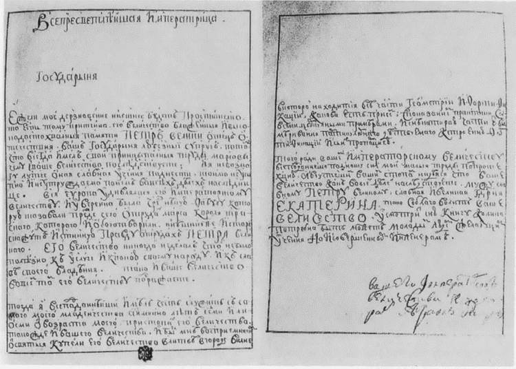 Посвящение императрице Екатерине. Страница рукописного труда Ганнибала. Фото автора.