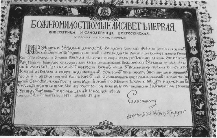 Указ императрицы Елизаветы о присвоении Ганнибалу чина генерал-майора. Подписан 13 декабря 1743 г.