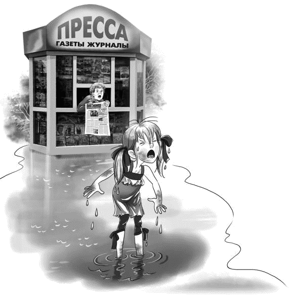 Действительно, Матильда остановилась перед огромной лужей, перекрывшей дорогу. Когда она шла на встречу с Вальдемаром, лужи тут не было. А теперь… Она же не знала, что Стася храбро зарезала шланг, из которого вытекло целое море. Газетный киоск возвышался над лужей, как скалы Норвегии. Но Матильда была в туфлях на высоченной платформе. И она перешла лужу почти без проблем. А Иван и Стася были в сандаликах.