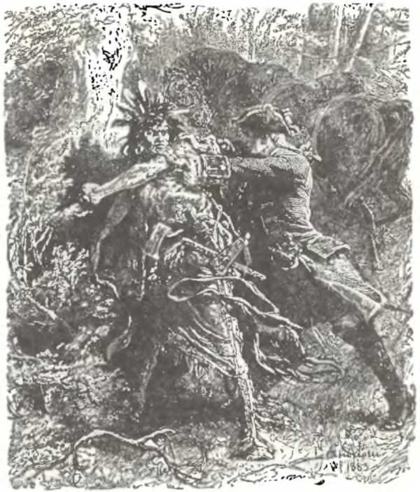 — Вот, Магуа, ты сам видишь, — начал Хейворд, стараясь говорить спокойным и дружеским тоном, — наступает ночь, а до форта Уильям-Генри не ближе, чем было, когда на восходе солнца мы выходили из лагеря генерала Вебба. Ты сбился с дороги, да и я оплошал. К счастью, мы столкнулись с охотником — слышишь, он разговаривает с певцом, — с охотником, который хорошо знает все оленьи тропы, все дорожки глухого леса и обещает проводить нас в такое место, где мы в безопасности отдохнем до следующего утра.
